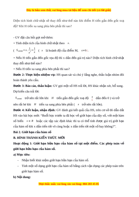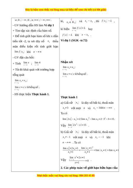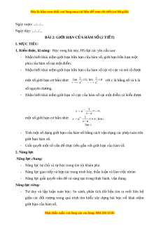 Đây là bản xem th , vu ử i lòng mua tài li u ệ đ xe ể m chi ti t ế (có l i ờ gi i ả ) Ngày so n ạ : .../.../... Ngày d y ạ : .../.../... BÀI 2: GI I Ớ H N Ạ C A Ủ HÀM S Ố (2 TI T) Ế I. MỤC TIÊU: 1. Ki n ế th c