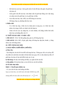 ứ tìm tòi, khám phá và sáng tạo, có ý th c ứ làm vi c ệ nhóm, tôn tr n ọ g ý ki n ế các thành viên khi h p ợ tác. - Chăm chỉ tích c c ự xây d n ự g bài, có trách nhi m, ệ chủ đ n ộ g chi m ế lĩnh ki n ế th c ứ theo s ự h n ướ g d n ẫ c a ủ GV. II. THI T Ế B Ị D Y Ạ H C Ọ VÀ H C Ọ LI U Ệ 1. Đ i ố v i ớ GV: SGK, Tài li u ệ gi n ả g d y ạ , giáo án, đ ồ dùng d y ạ h c. ọ 2. Đ i ố v i