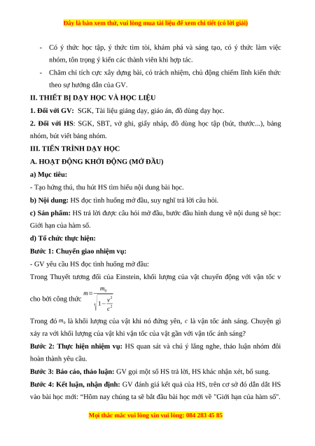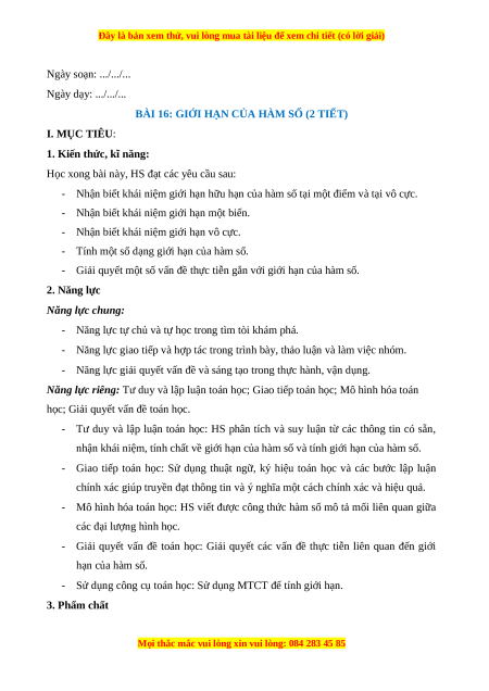 - Giải quyết một số vấn đề thực tiễn gắn với giới hạn của hàm số. 2. Năng lực