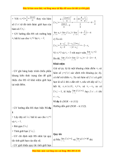 thiệu cho HS về khái niệm giới hạn hạn là số L khi x dần tới x0 nếu với dãy số (xn) tại một điểm. bất kì, x ≠ x → x