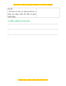 ờ gian, GV có thể tổ ch c ứ cho - HS đ a ư ra câu trả l i ờ trư c ớ l p ớ HS ch i ơ trò ch i ơ , ch ng ẳ h n ạ trò ch i ơ “Đi - HS l ng ắ nghe ch ” ợ nh s ư au: + GV chu n ẩ bị m t ộ số đồ v t ậ ho c ặ đồ ch i ơ đ t ể rong m t ộ số r , có ổ th không c ế n ầ dùng đồ v t ậ th t ậ mà c t ắ nh ng ữ t m ấ bìa, để tên đ ồ v t ậ . Kèm v i ớ đ ồ v t ậ là giá c a ủ đ ồ v t ậ đó (giá m i ỏ đố v t ậ đề là 100 đ ng, ồ 200 đồng, 500 đ ng ồ ho c ặ 1 000 đ ng.) ồ M i ỗ rổ có m t ộ b n