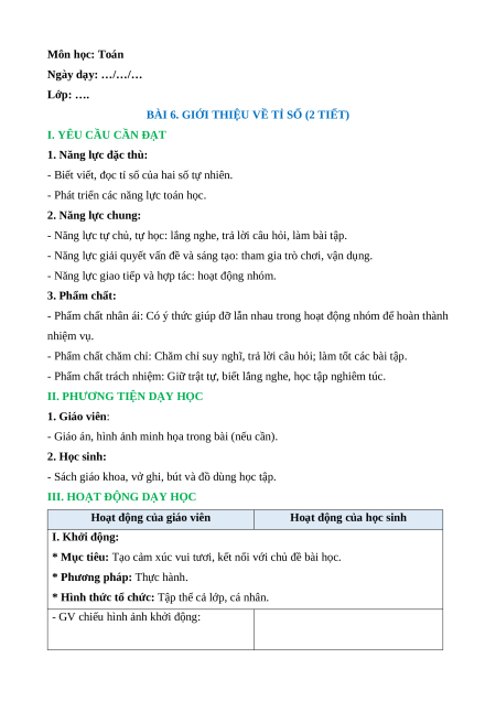 BÀI 6. GIỚI THIỆU VỀ TỈ SỐ (2 TIẾT)