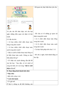 nghe những điều quan sát được từ bức - HS chia sẻ về những gì quan sát tranh. được trong bức tranh. GV đặt câu hỏi: