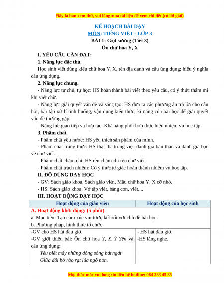 BÀI 1: Giọt sương (Tiết 3) Ôn chữ hoa Y, X I. YÊU CẦU CẦN ĐẠT: 1. Năng lực đặc thù.