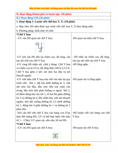theo đối tượng HS, GV có thể thực hiện viết mẫu X hoa.
