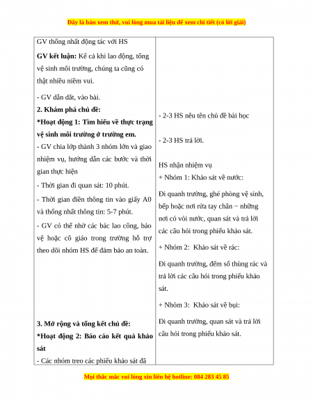 Giáo án Giữ gìn vệ sinh môi trường Hoạt động trải nghiệm 2 Kết nối tri thức