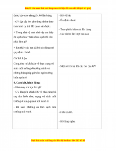 - HS tìm hiểu được thực trạng vệ sinh môi trường ở trường học từ đó có ý thức giữ