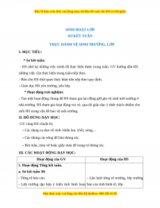 THỰC HÀNH VỆ SINH TRƯỜNG, LỚP I. MỤC TIÊU: * Sơ kết tuần: