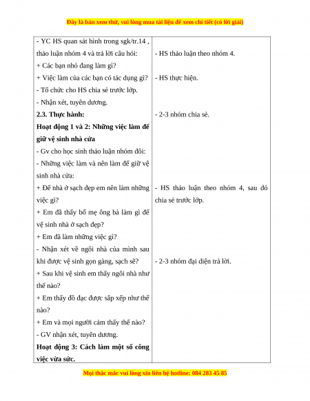 Hoạt động 3: Cách làm một số công việc vừa sức.