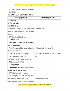 - GV dẫn dắt, giới thiệu bài. 2.2. Khám phá: