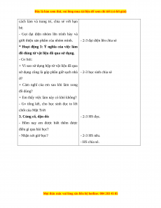 - Tổ chức cho HS chia sẻ trước lớp. - Nhận xét, tuyên dương. 2.3. Thực hành: - 2-3 nhóm chia sẻ.