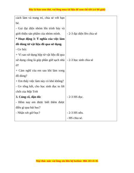 - Gọi HS đọc lời chốt của Mặt Trời.