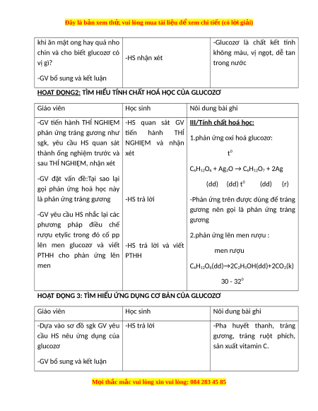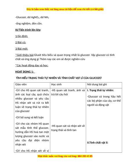 Đây là bản xem th , vu ử i lòng mua tài li u ệ đ xe ể m chi ti t (c ế ó l i ờ gi i ả ) -Glucozơ, dd AgNO3, dd NH3 -ống nghiệm, đèn cồn.