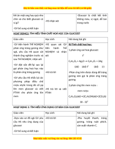 HOẠT ĐỘNG2: TÌM HIỂU TÍNH CHẤT HOÁ HỌC CỦA GLUCOZƠ Giáo viên Học sinh Nôi dung bài ghi