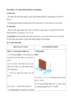 - HS nhận biết được định nghĩa của góc giữa đường thẳng với mặt phẳng có số đo từ 0o đến 90o.