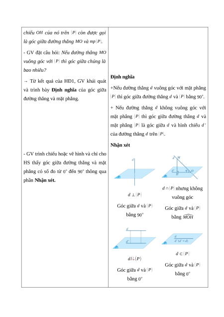Giáo án Góc giữa đường thẳng và mặt phẳng. Góc nhị diện Toán 11 Cánh diều