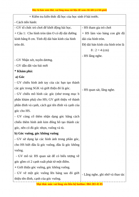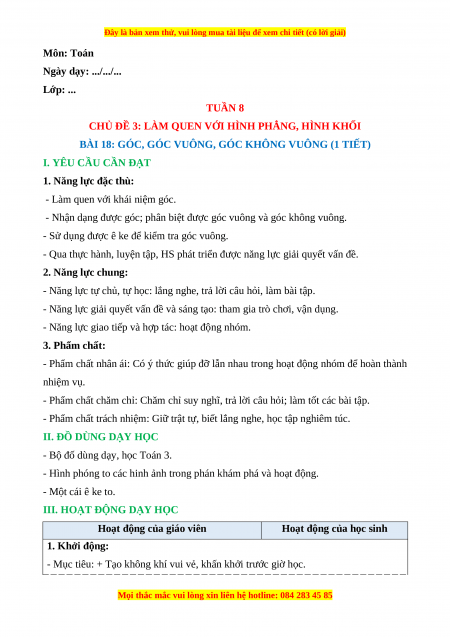 BÀI 18: GÓC, GÓC VUÔNG, GÓC KHÔNG VUÔNG (1 TIẾT)