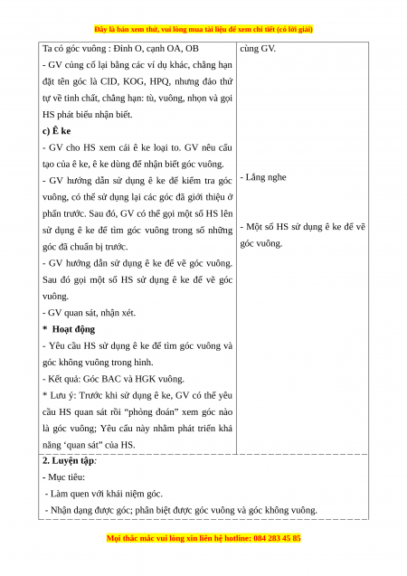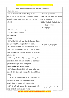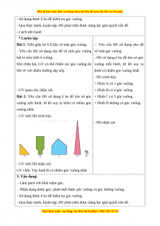 cho HS biết đâu là góc vuông, đâu là góc không vuông.