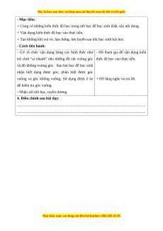 - Nhận dạng được góc; phân biệt được góc vuông và góc không vuông.