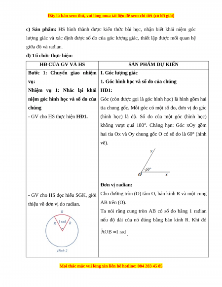lượng giác và xác định được số đo của góc lượng giác, thiết lập được mối quan hệ giữa độ và rađian.