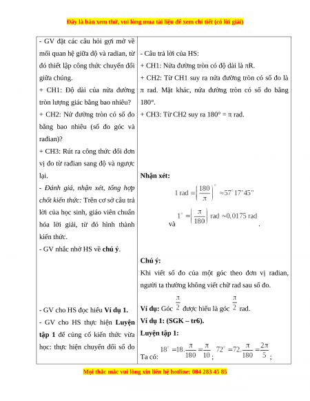 thiệu về đơn vị đo radian.