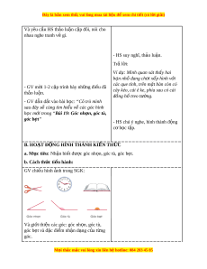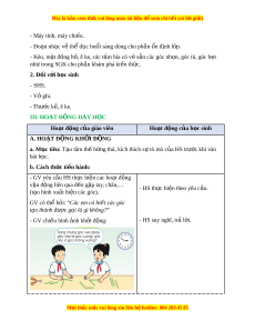 ặ đồng hồ, ê ke, các t m ấ bìa có v s ẽ n các ẵ góc nh n, góc t ọ ù, góc b t ẹ nh t ư rong SGK cho ph n khám ầ phá ki n t ế h c. ứ 2. Đ i ố v i ớ h c s ọ inh - SHS. - Vở ghi. - Thư c k ớ , ê ke. ẻ III. HOẠT Đ N Ộ G D Y Ạ H C Ọ Hoạt đ ng c ộ a g ủ iáo viên Hoạt đ ng c ộ a h ủ c s ọ inh A. HOẠT Đ N Ộ G KH I Ở Đ N Ộ G a. Mục tiêu: T o t ạ âm th h ế ng t ứ