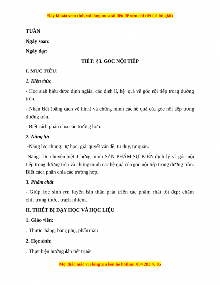TIẾT: §3. GÓC NỘI TIẾP I. MỤC TIÊU: 1. Kiến thức