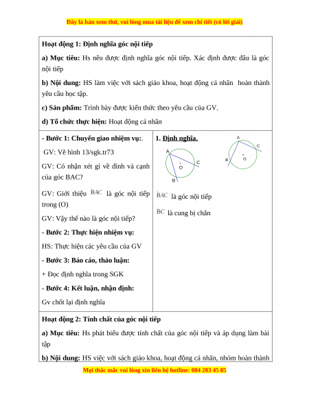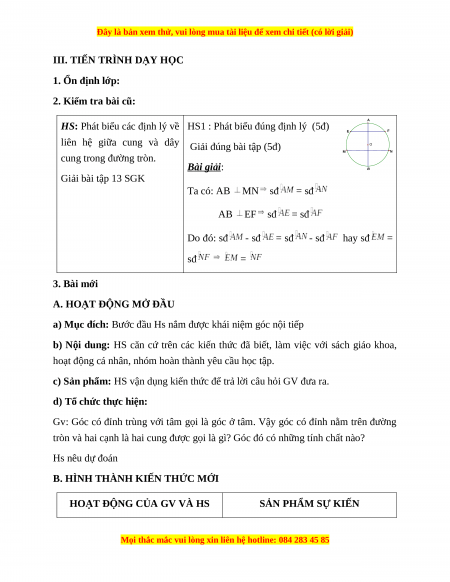 Giáo án Góc nội tiếp Toán 9 Học kì 2