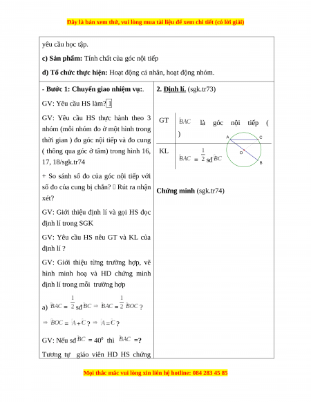 -Năng lưc chuyên biệt :Chứng minh SẢN PHẨM SỰ KIẾN định lý về góc nội