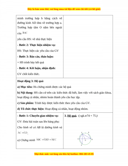 - Nhận biết (bằng cách vẽ hình) và chứng minh các hệ quả của góc nội tiếp trong