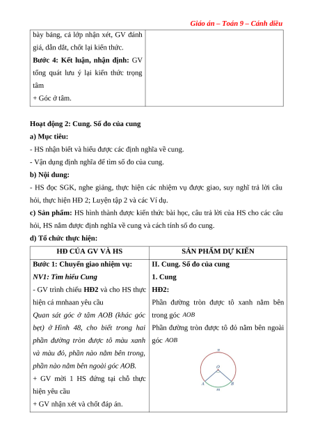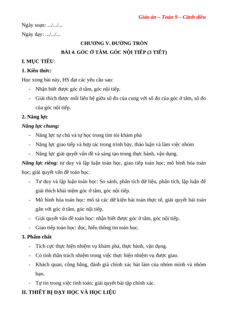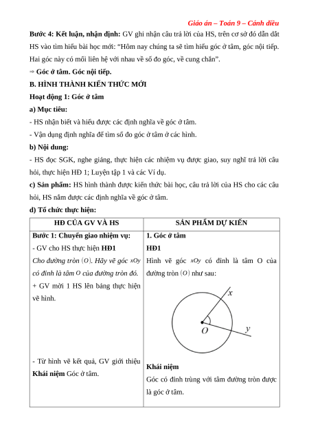 Giáo án Góc ở tâm. Góc nội tiếp Toán 9 Cánh diều