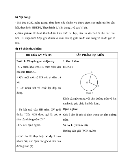 - Xác định được số đo của góc ở tâm. b) Nội dung: