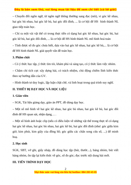 hai góc kề bù hay hai góc đối đỉnh. 2. Năng lực