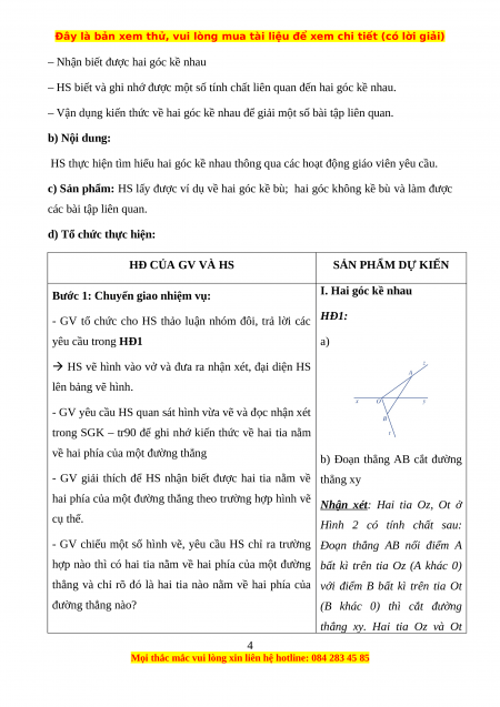 ‒ Vận dụng kiến thức về hai góc kề nhau để giải một số bài tập liên quan. b) Nội dung: