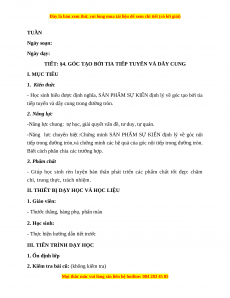 TIẾT: §4. GÓC TẠO BỞI TIA TIẾP TUYẾN VÀ DÂY CUNG I. MỤC TIÊU 1. Kiến thức