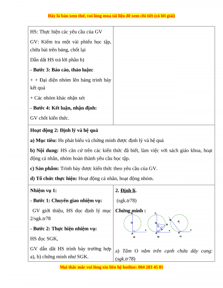 d) Tổ chức thực hiện: Hoạt động cá nhân, hoạt động nhóm. Nhiệm vụ 1: 2. Định lí.