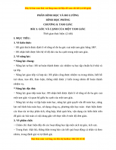 BÀI 1: GÓC VÀ CẠNH CỦA MỘT TAM GIÁC