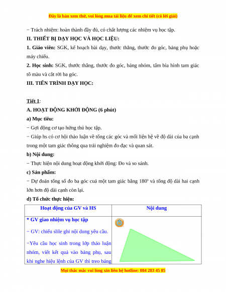 2. Học sinh: SGK, thước thẳng, thước đo góc, bảng nhóm, tấm bìa hình tam giác