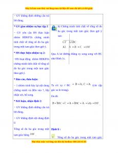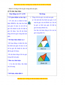 − Năng lực giao tiếp toán học: HS nhận biết được định lí về tổng số đo ba góc cuả