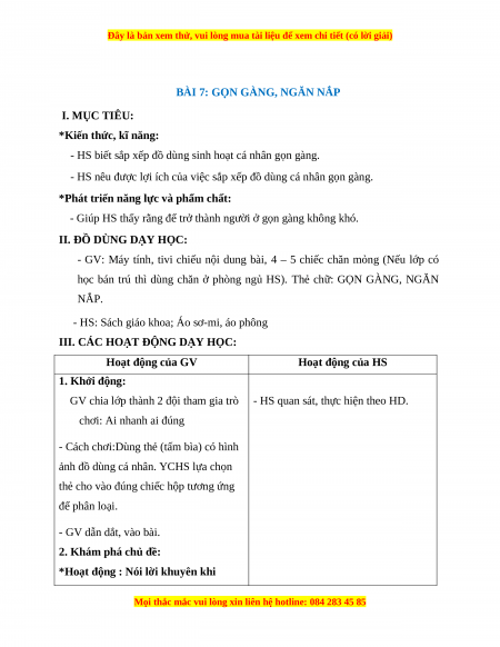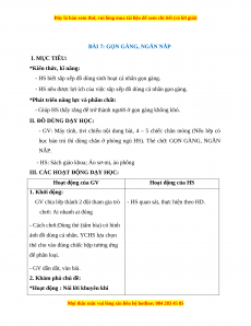 BÀI 7: GỌN GÀNG, NGĂN NẮP I. MỤC TIÊU: