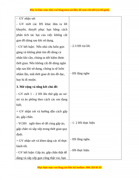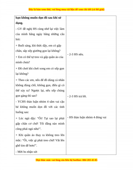 - HS nêu được lợi ích của việc sắp xếp đồ dùng cá nhân gọn gàng.