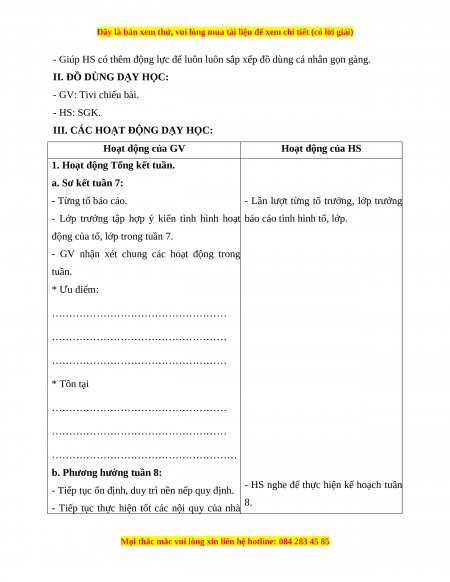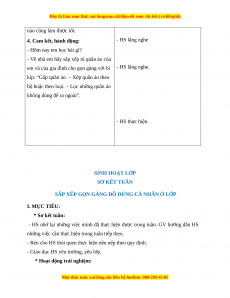 SẮP XẾP GỌN GÀNG ĐỒ DÙNG CÁ NHÂN Ở LỚP I. MỤC TIÊU: * Sơ kết tuần: