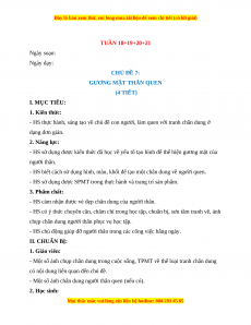 GƯƠNG MẶT THÂN QUEN (4 TIẾT) I. MỤC TIÊU: 1. Kiến thức: