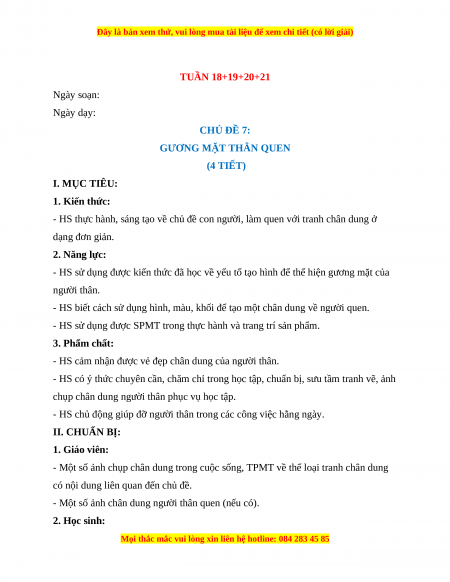 TUẦN 18+19+20+21 Ngày soạn: Ngày dạy: CHỦ ĐỀ 7: