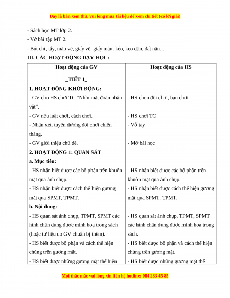 2. HOẠT ĐỘNG 1: QUAN SÁT a. Mục tiêu: