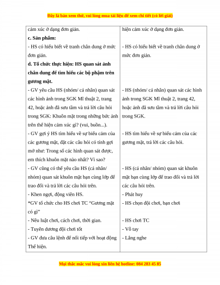 - HS nhận biết được cách thể hiện gương mặt qua SPMT, TPMT. mặt qua SPMT, TPMT. b. Nội dung: