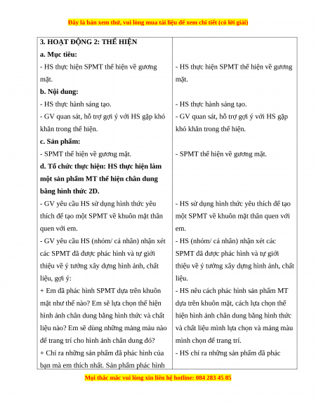 3. HOẠT ĐỘNG 2: THỂ HIỆN a. Mục tiêu: