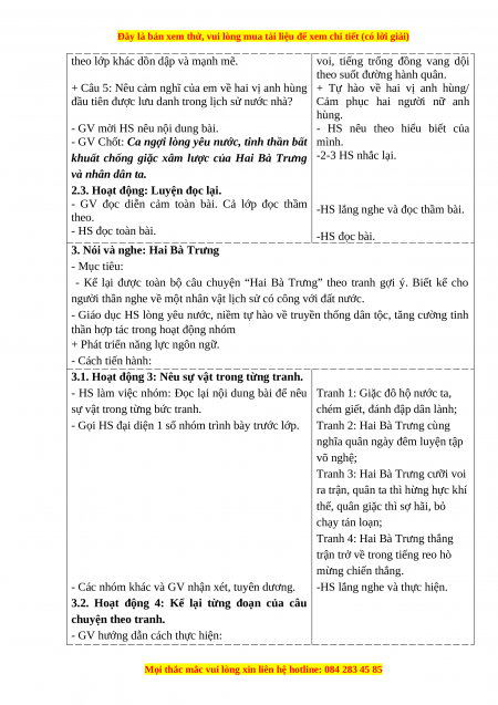 - Kể lại được toàn bộ câu chuyện “Hai Bà Trưng” theo tranh gợi ý. Biết kể cho