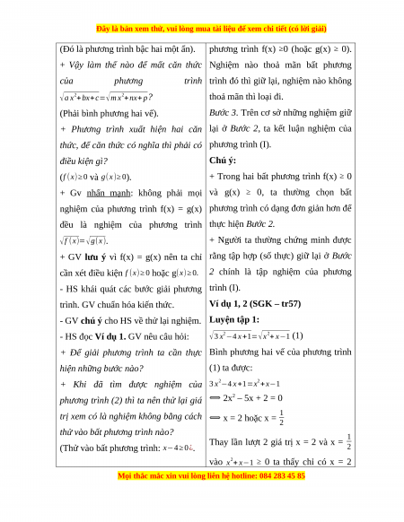 √f (x)=√g(x), trong đó f(x) và g(x) lần (f(x) = ax2 + bx + c và g(x) = mx2 +