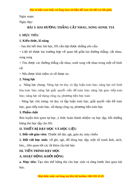 Đây là bản xem th , vu ử i lòng mua tài li u ệ đ xe ể m chi ti t ế (có l i ờ gi i ả ) Ngày so n: ạ Ngày d y: ạ BÀI 3: HAI ĐƯ N Ờ G TH N Ẳ G C T